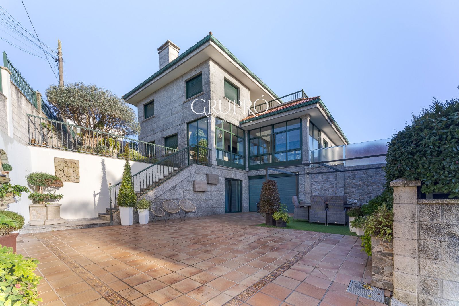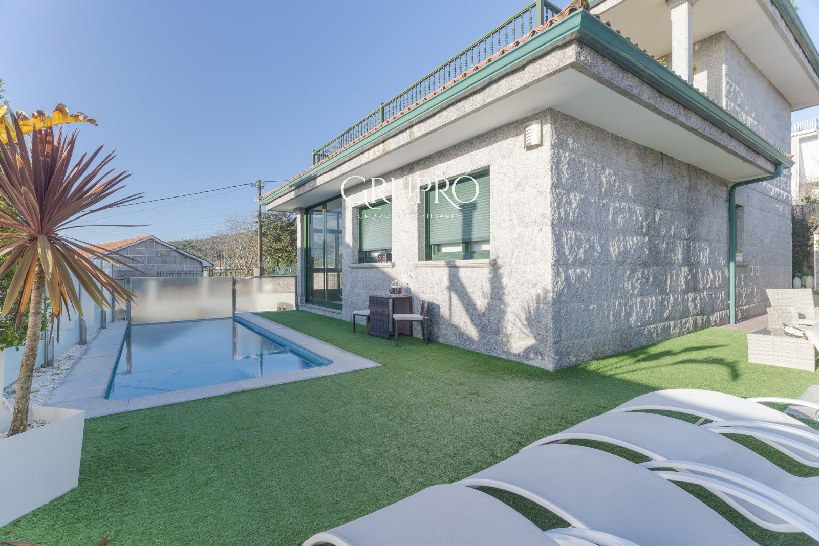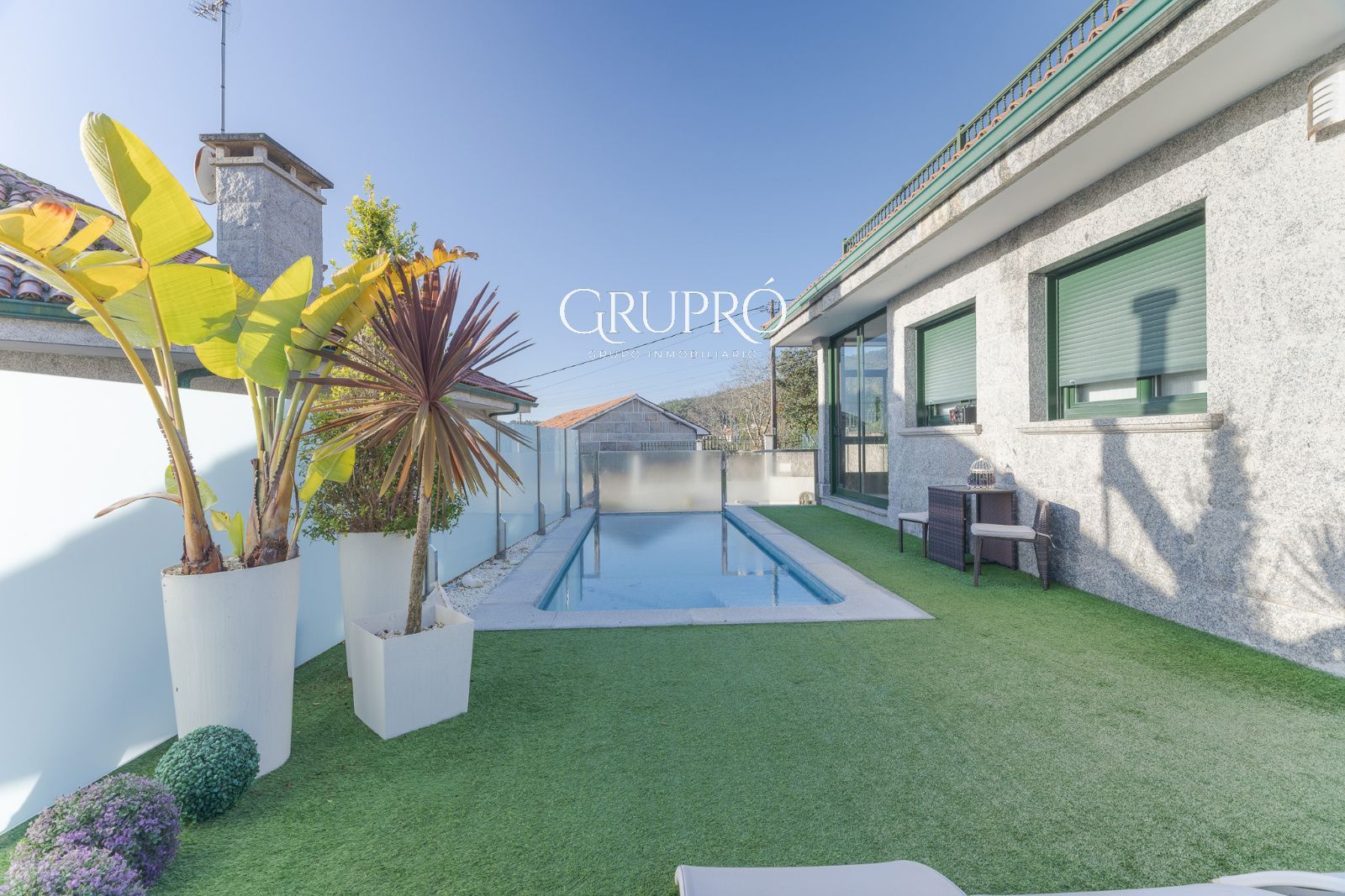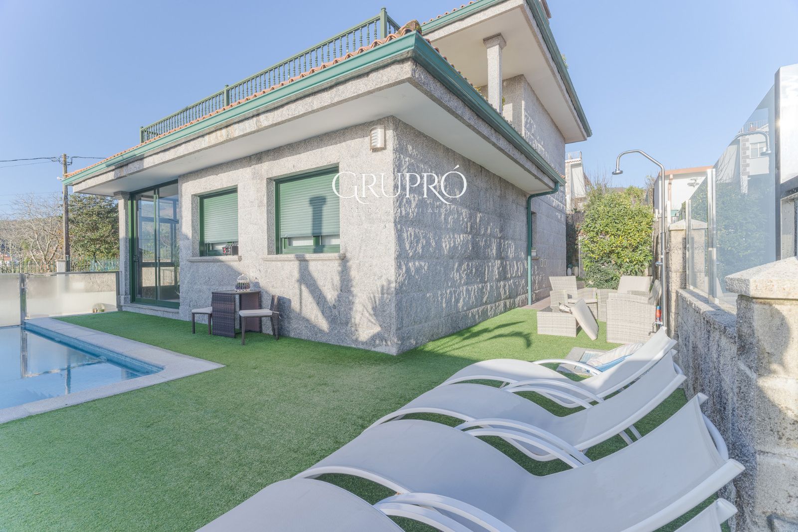 El exterior es, sencillamente, un privilegio: una elegante piscina privada, jardines perfectamente cuidados, amplias terrazas y galerías acristaladas que permiten disfrutar del entorno en cualquier época del año. Su magnífica zona de asador convierte cada reunión en una experiencia memorable.