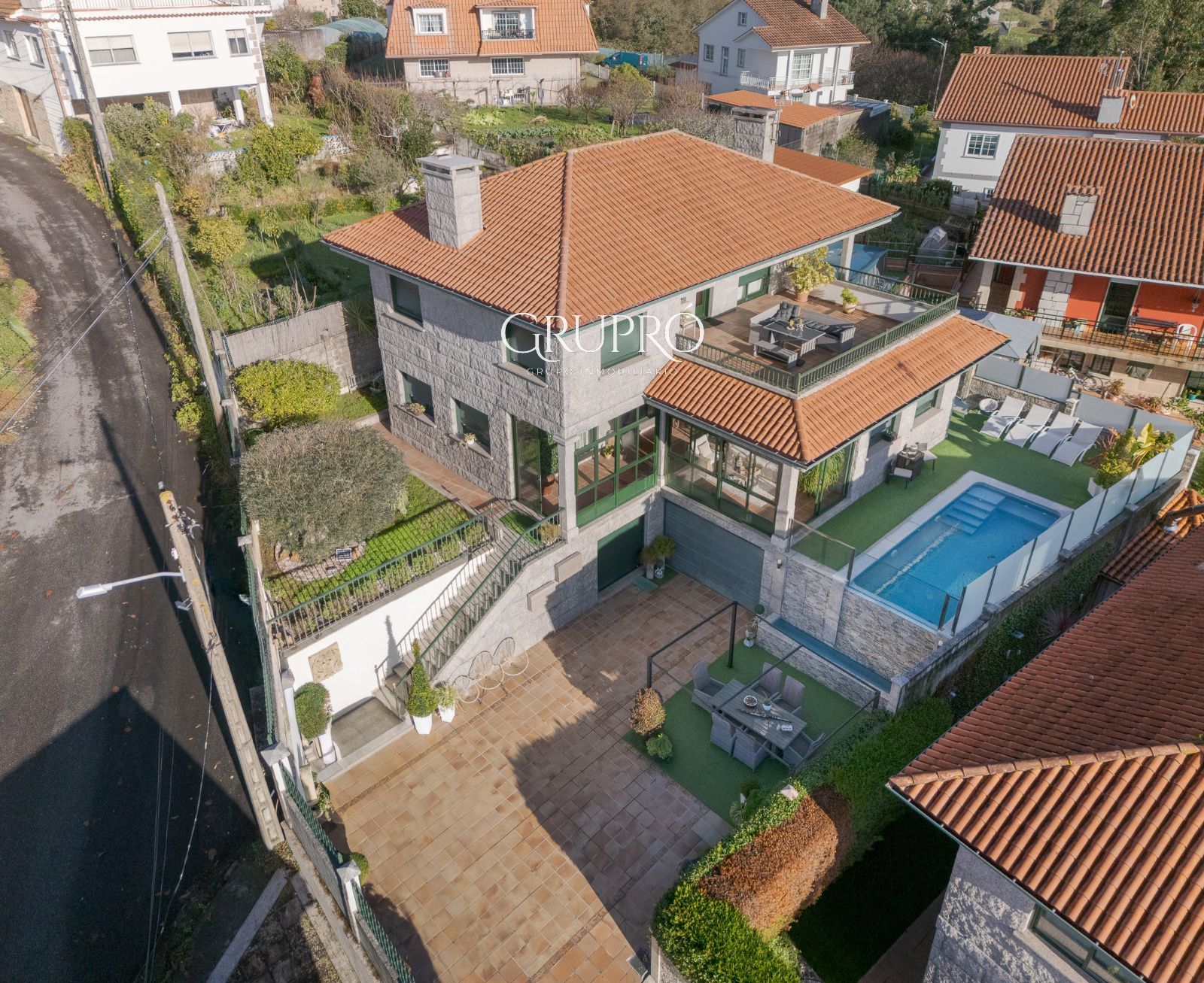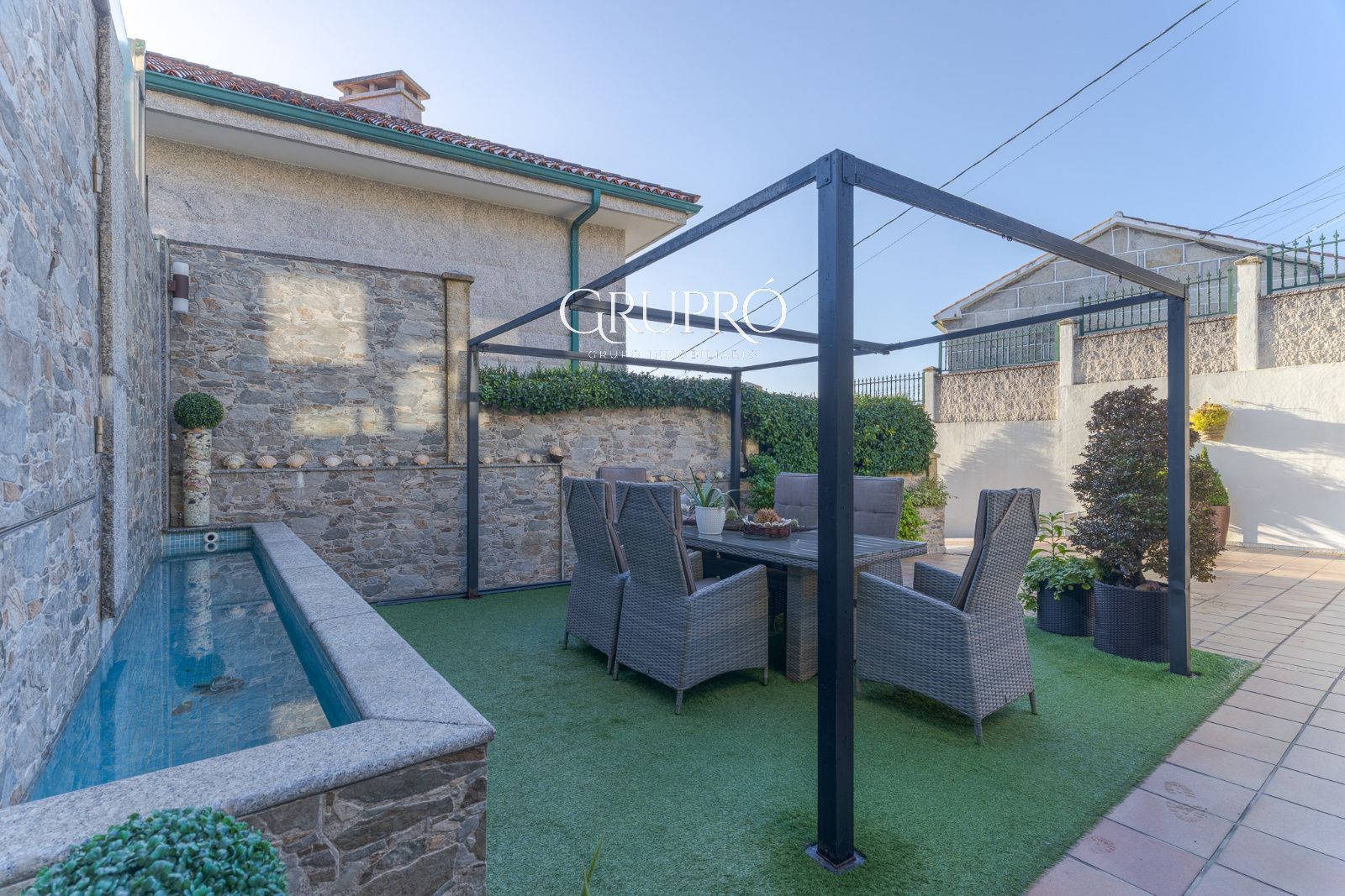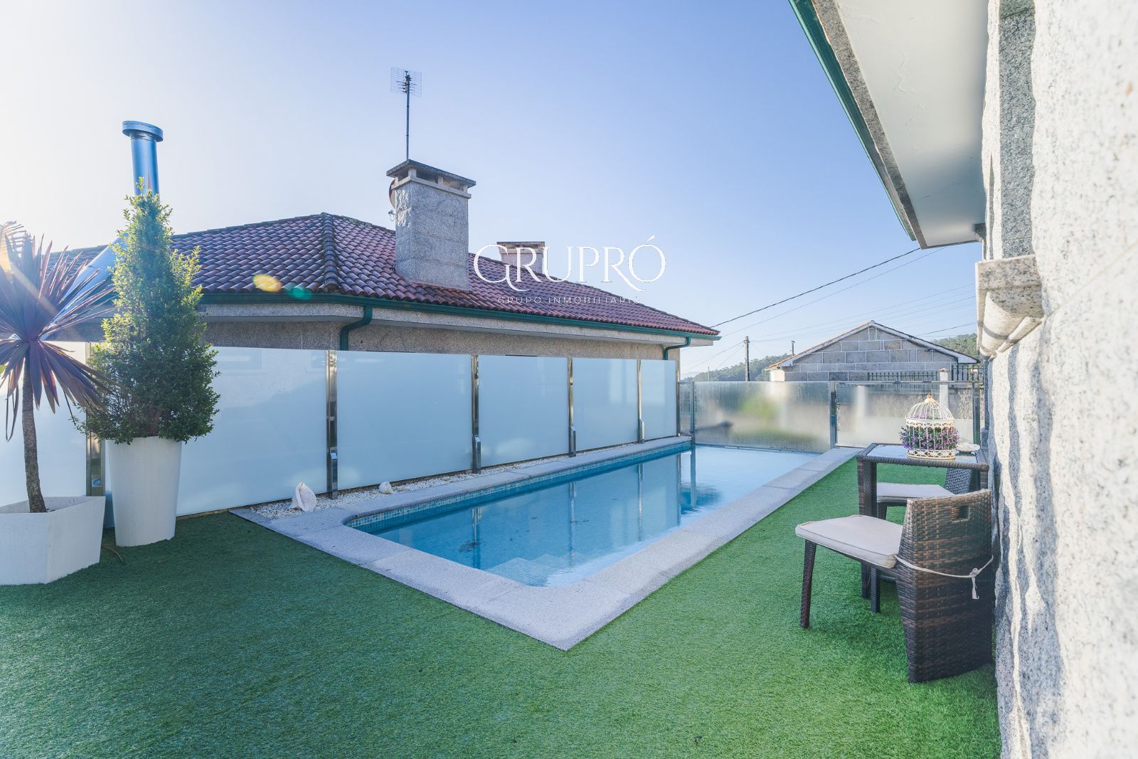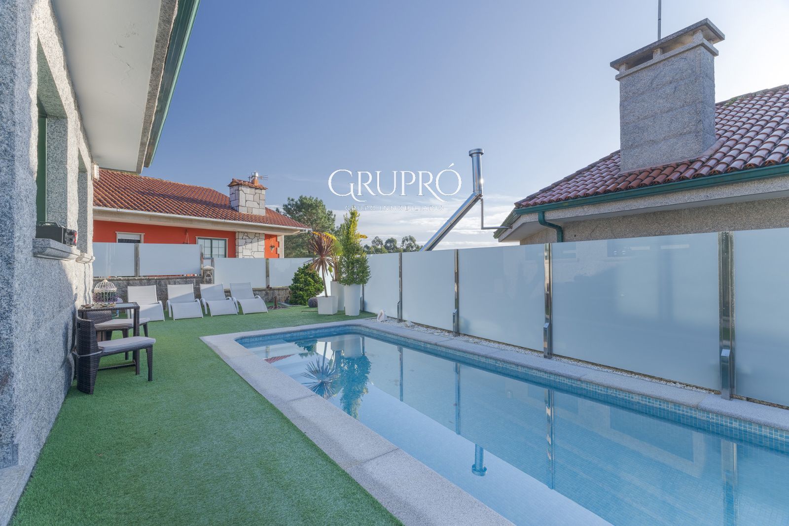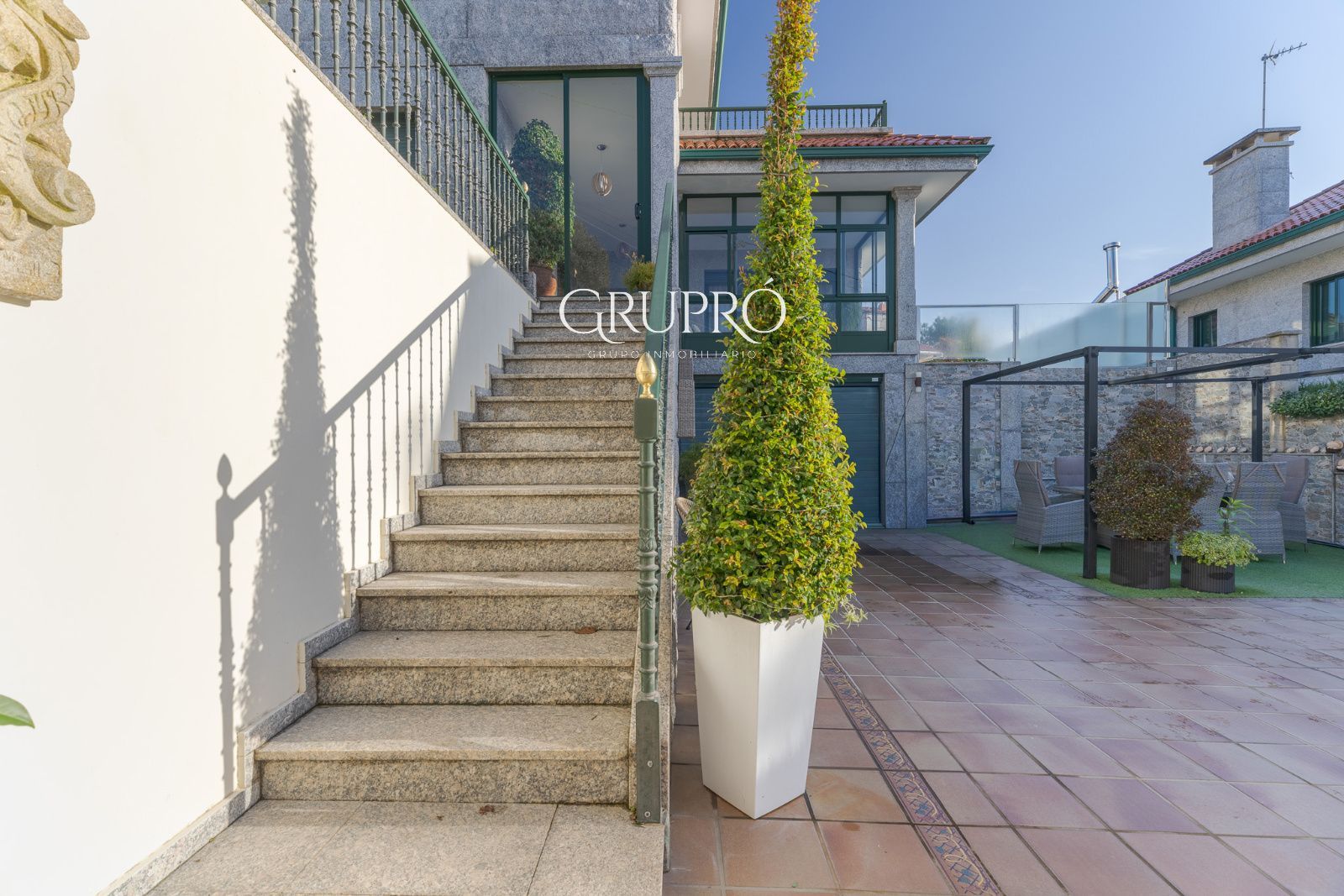 El exterior es, sencillamente, un privilegio: una elegante piscina privada, jardines perfectamente cuidados, amplias terrazas y galerías acristaladas que permiten disfrutar del entorno en cualquier época del año. Su magnífica zona de asador convierte cada reunión en una experiencia memorable.
